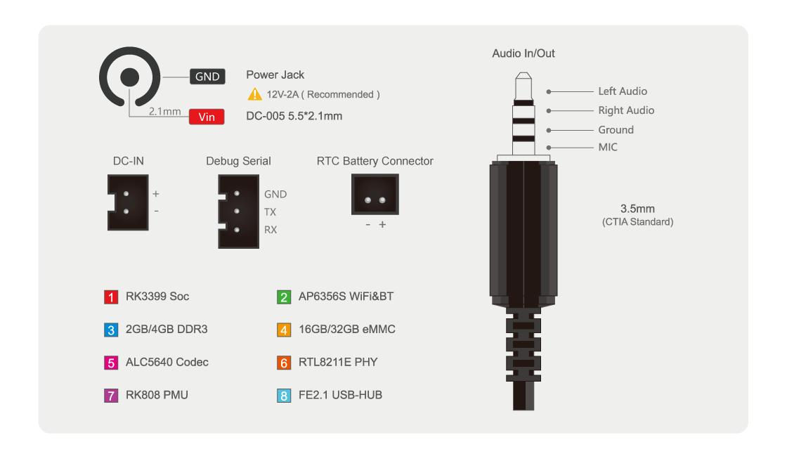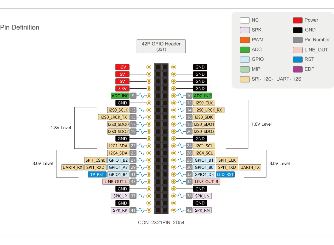 Firefly-RK3399 has a rich interfaces, in addition to HDMI2.0, MIPI-CSI, MIPI-DSI, PCIe, DP1.2, eDP, USB3.0 , but also reserved 42PIN Header, including 8- ADC, I2C, SPI/UART, LINE-OUT, Speaker.