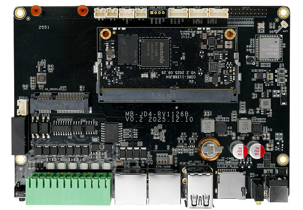 Ethernet: 1 × Gigabit Ethernet (RJ45), 1 × 100M Ethernet (RJ45), supporting TSO (TCP Segmentation Offload) and USO (UDP Segmentation Offload) network acceleration WiFi: On-board WiFi & Bluetooth module, supporting 2.4GHz/5GHz dual-band WiFi and Bluetooth 5.0/4.2 4G: 4G/3G expandable via Mini PCIe |