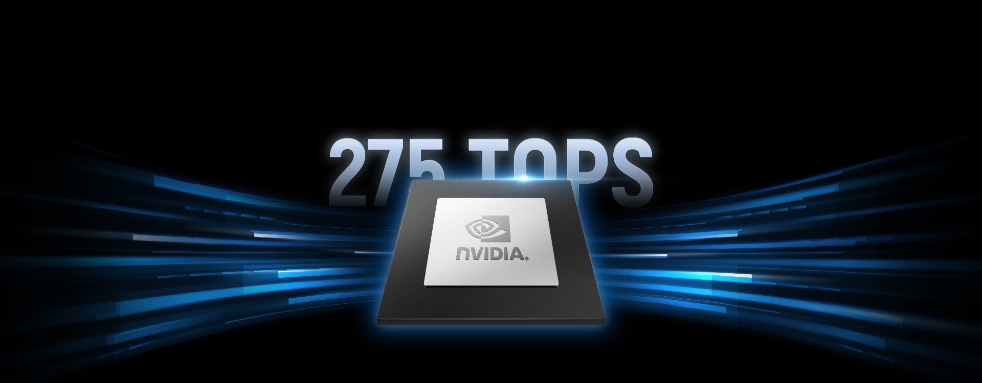 The integrated Jetson AGX Orin (64GB) module which delivers up to 275 TOPS of computing power, capable of smoothly running mainstream modern AI models—including robotics models, large language models, large vision models, and AI image generation models—while also enabling advanced functionalities such as object recognition, target detection and tracking, speech recognition, and other vision-based development tasks.