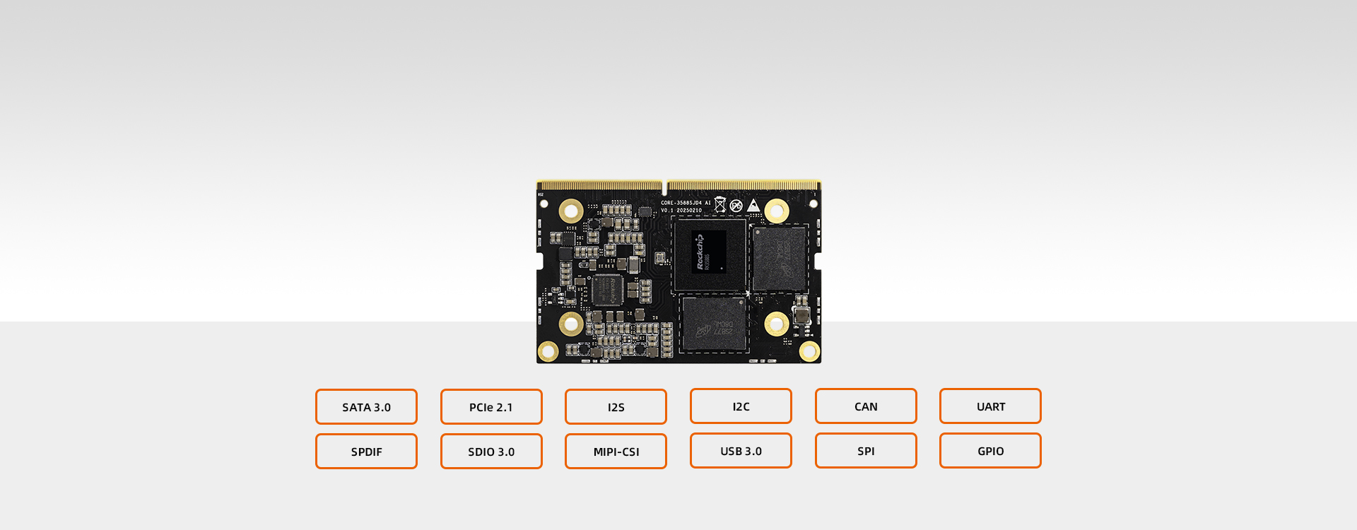 Featuring SATA 3.0, PCIe 2.1, I2S, I2C, CAN, UART, SPDIF, SDIO 3.0, MIPI-CSI, USB 3.0, USB 2.0, SPI, and GPIO expansion interfaces, it enables seamless connectivity with a wide range of peripherals, meeting computational, storage, and multi-domain application requirements.